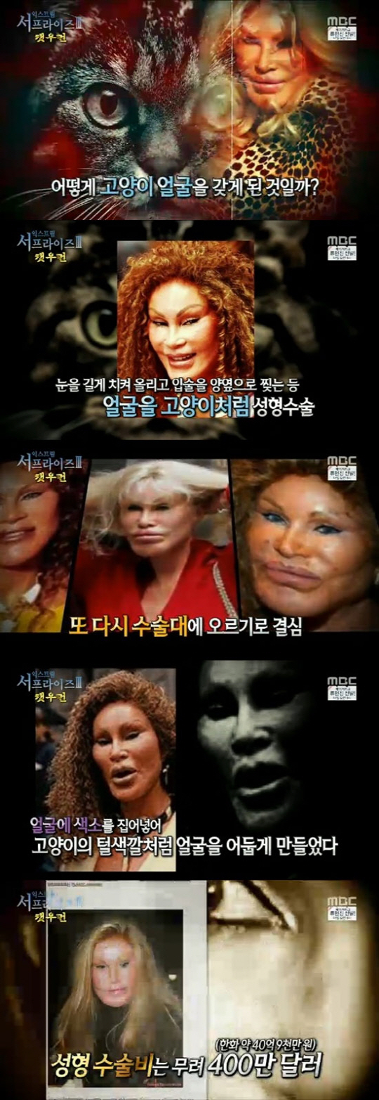 그간 조슬린은 성형에 들인 돈이 무려 400만 달러. 한화로 40억 9천만 원에 달한다. 사랑을 받기 위해 흉측한 얼굴로 변해버린 조슬린은 현재 성형 부작용 치료를 받고 있다.