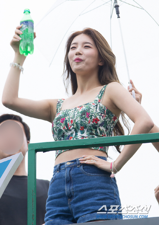 이날 늘씬한 각선미와 완벽한 S라인을 뽐내는 민소매 크롭톱과 핫팬츠를 입고 모습을 드러낸 수지는 등장만으로도 큰 환호를 받았다.