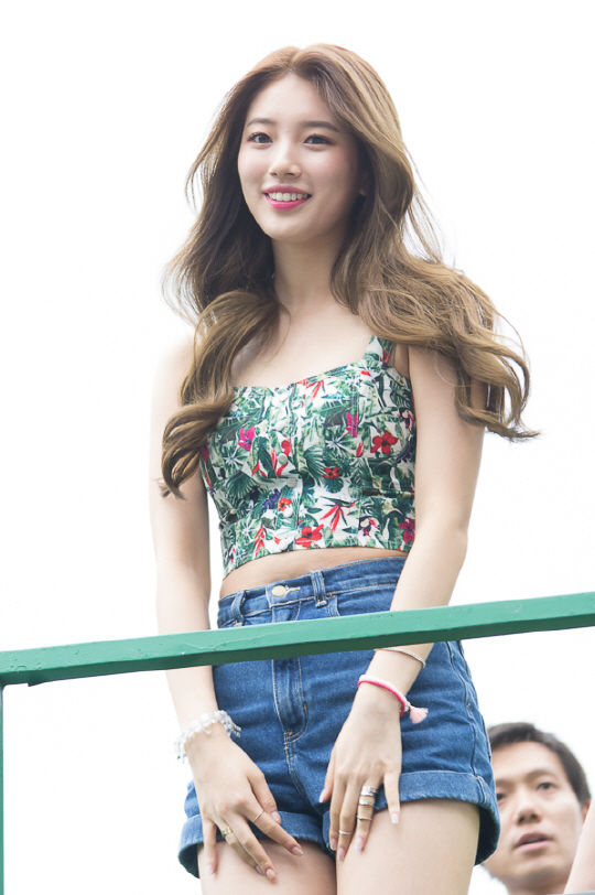 이날 '제2회 신촌 물총축제 스프라이트 샤워'에 카운트다운을 외치기 위해 무대에 올른 수지는 민소매 크롭톱과 핫팬츠를 입고 등장한 수지는 늘씬한 각선미와 완벽한 S라인으로 이목을 집중시켰다.