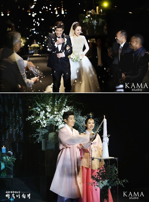 이에 '카마스튜디오'는 결혼식 본식 사진을 공개했다. 공개된 사진에서 박지성과 김민지는 행복한 미소와 함께 행진을 하고 있으며, 많은 사람들의 축하를 받고 있다.