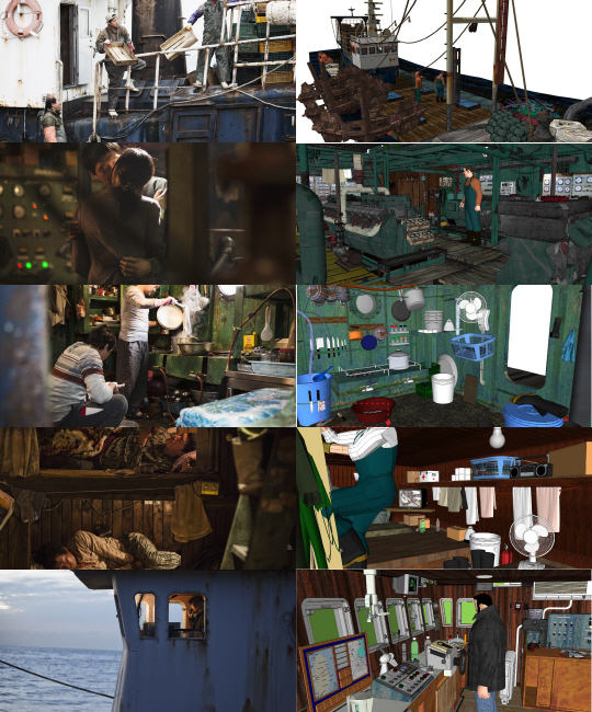 이와 더불어, '도둑들' '관상'의 이하준 미술감독은 "'전진호'의 각 공간들은 마치 선원들의 각자의 '영역'처럼 존재한다. 숙소와 부엌은 선원들이 함께 생활하는 공간이며, 조타실은 다른 선원들이 함부로 들어오지 못하는 선장 고유의 영역, 기관실에서는 기관장이, 갑판에서는 갑판장이 그 공간에서 일어나는 전체적인 일들을 도맡아 한다"며 영화의 스토리와 분위기에 맞춰 공들여 제작한 '전진호'의 탄생기를 설명했다.