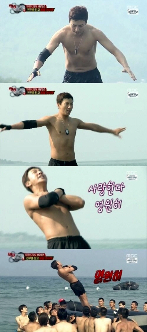 이날 수중 트러스트 폴 훈련 중이었던 박건형은 고무보트 위에서 바다에 빠지기 직전 "지금 생각나는 사람이 있냐"는 교관의 질문에 "여자친구가 생각난다"고 답했다.