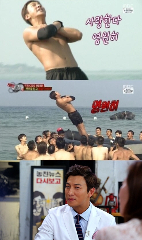 이날 수중 트러스트 폴 훈련 중이었던 박건형은 고무보트 위에서 바다에 빠지기 직전 "지금 생각나는 사람이 있냐"는 교관의 질문에 "여자친구가 생각난다"고 답했다.