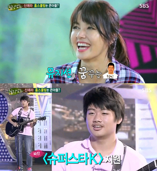 배우 신애라가 큰아들 차정민 군이 엠넷(Mnet) '슈퍼스타K'오디션 프로그램에 도전했던 사연을 털어놨다.