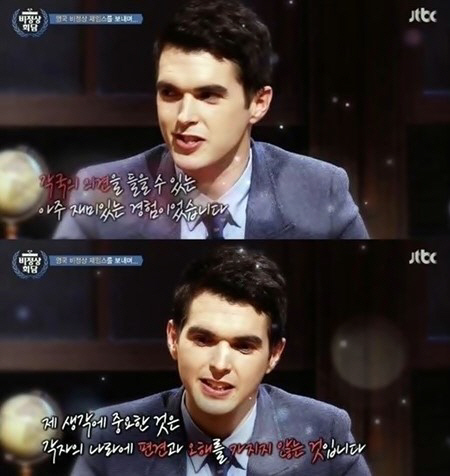이날 방송에서 제임스 후퍼는 "박사 과정을 위해 호주로 떠난다"며 마지막 방송임을 알렸다. 영국 대표로 프로그램에 합류한 제임스 후퍼는 그간 '비정상회담'에서 젠틀한 이미지로 영국식 유머를 선보이며 사랑 받았다. 특히 제임스 후퍼는 한국의 청년들에게 꿈을 위한 3가지 조언을 남겨 감동을 선사하기도 했다.