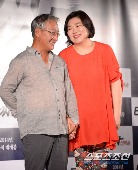 29일 오전 서울 롯데시네마 건대입구에서 영화 '타짜 신의 손'의 제작보고회가 열렸다. '타짜 신의 손'은 삼촌 고니를 닮아 어린 시절부터 남다른 손재주와 승부욕을 보이던 대길이 그 누구도 믿을 수 없는 타짜 세계에 겁 없이 뛰어들면서 목숨줄이 오가는 한판 승부를 벌이게 되는 이야기를 그려낸 영화로 오는 9월 초 개봉될 예정이다. 제작보고회에서 이경영과 고수희가 포즈를 취하고 있다. 김경민 기자 kyungmin@sportschosun.com / 2014.07.29.