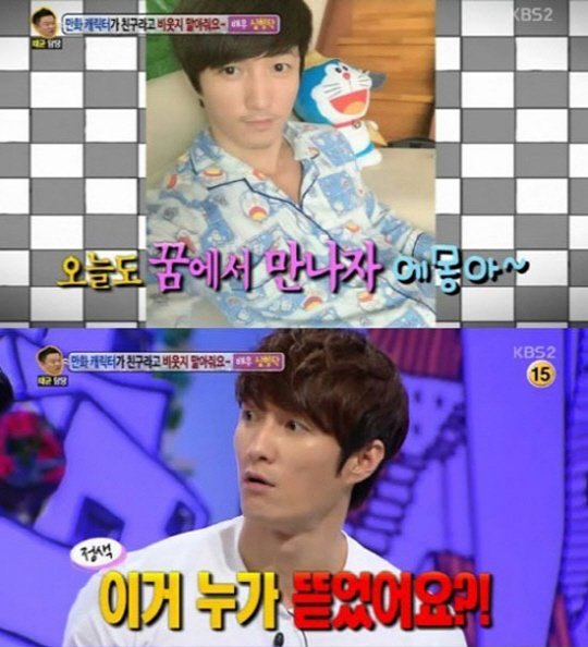 이어 "가끔 스트레칭 할 때 보면 양말도 도라에몽이더라. 요일 별로 양말이 바뀌기도 했다"고 덧붙여 심형탁을 당황케 했다.