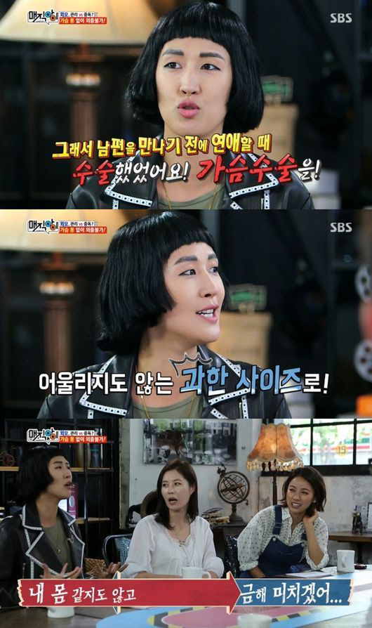 홍진경은 29일 방송된 SBS '매직아이'에 출연해 가슴이 작아 고민이라는 시청자 사연에 "나도 가슴 성형을 한 적이 있다"고 깜짝 고백했다.