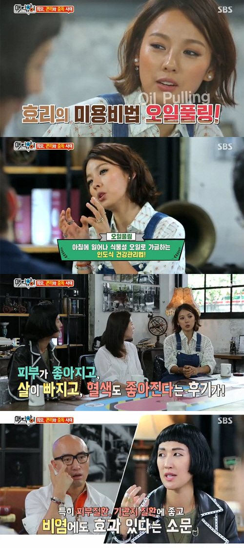 이에 홍진경도 "나도 오일 풀링을 한 지 2주 됐는데 매일 아침에 하고 있다. 피부, 기관지 질환이나 비염이 있는 사람한테 좋다고 하더라"며 "특히 나는 오일 풀링을 한 후 며칠 사이에 치아가 미백이 됐다. 이 닦아도 완전히 개운한 느낌이 없었는데 정말 개운하다. 오일을 머금으면 더 느끼할 것 같았는데 그렇지 않다"며 적극 추천했다.