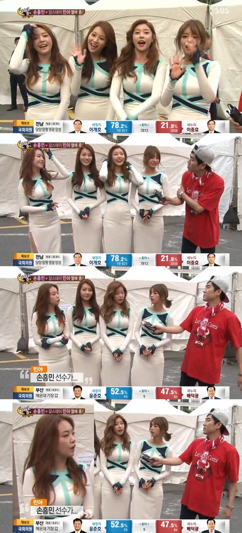 당시 민아는 "브라질 월드컵에 출전한 태극전사들 중에 누가 골을 넣을 것 같냐"는 질문에 "손흥민 선수가 넣을 것 같다"고 답해 눈길을 끌었다.