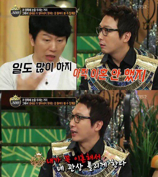 그러자 탁재훈은 "내가 꼭 이혼해서 그 관상 틀리게 한다. 꼭 이혼하겠다"고 말했고, 이 같은 발언에 놀란 강호동은 "두 분이 정말 친하기 때문에 이런 말을 할 수 있었다"고 수습했다.