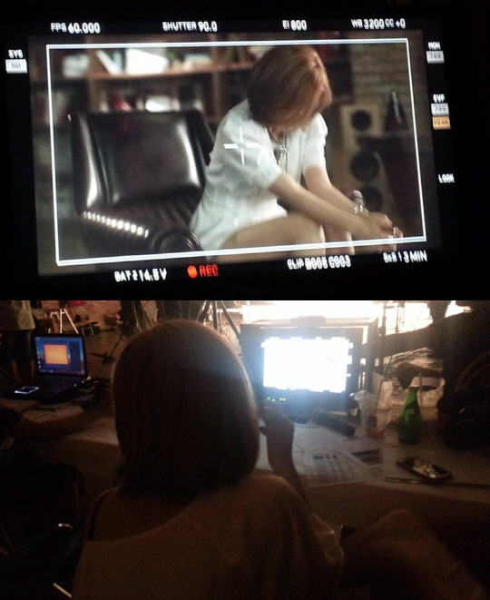 사진 속 시크릿 멤버는 파격적인 단발 머리로 변신한 채 고뇌에 쌓인 듯 두 손을 마주 잡고 시선을 아래로 떨구고 있다. 또한, 직접 촬영 모니터를 꼼꼼히 체크하는 사진에는 왼쪽 어깨라인이 드러나는 루즈한 티셔츠를 입고 매끈한 자태를 뽐내고 있다.
