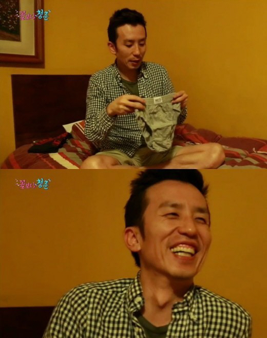 특히 유희열은 "원래 삼각팬티는 안 입는데 너무 싸서 하나 구입했다"며 카메라 앞에 공개했다.