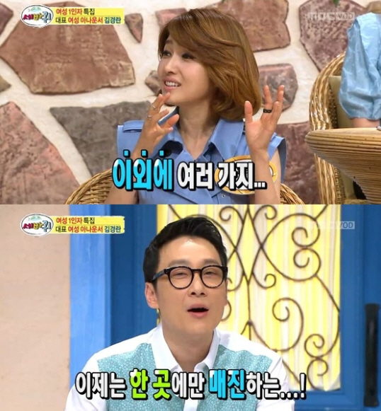 김경란은 2일 MBC '세바퀴'에 출연, 과거 이휘재와 9년간 MC로 호흡을 맞춘 이야기를 고백했다.