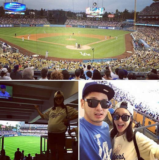공개된 사진 속에는 다저스 티셔츠를 입은 그녀가 한껏 부른 만삭의 모습으로 카메라를 응시하고 있다. 특히 남편과 함께 찍은 사진에서 행복해 보이는 모습이 눈길을 끌었다.