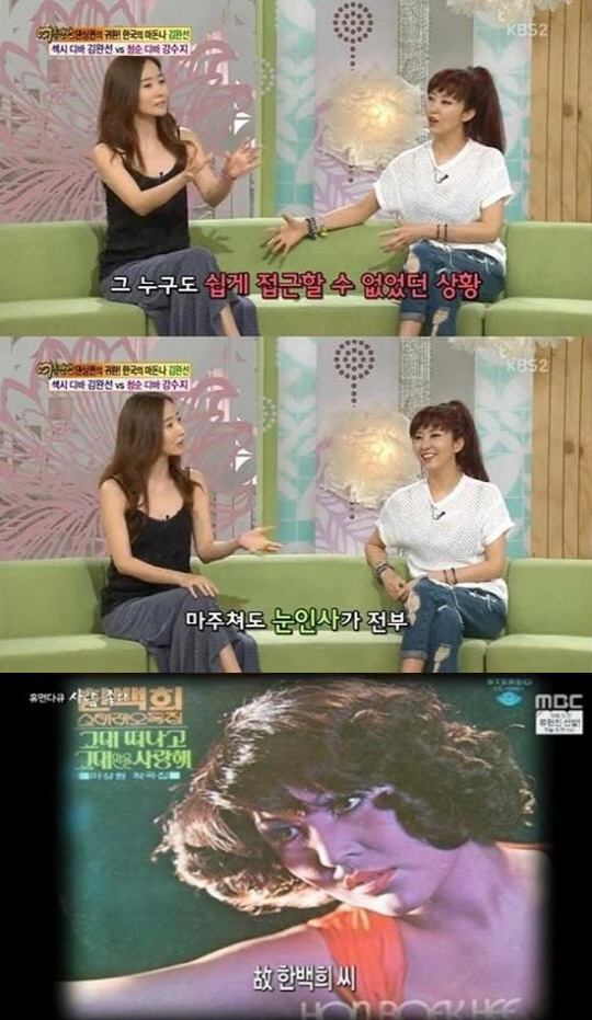 이어 "김완선이 늘 한백희 선생님 옆에 있어 가끔 인사를 하려고 해도 한백희 선생님이 인사를 받아 주시는 게 전부였다"며 "김완선과는 눈인사밖에 할 수 없었다"고 덧붙였다.