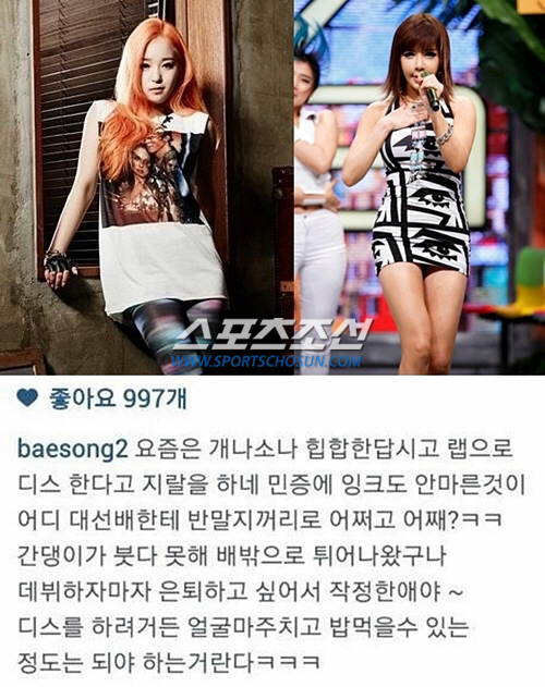 이어 이 네티즌은 "데뷔하자마자 은퇴하고 싶어서 작정한 애야, 디스를 하려거든 얼굴 마주치고 밥 먹을 수 있는 정도는 되어야 하는 거란다"라고 일침을 가했다.