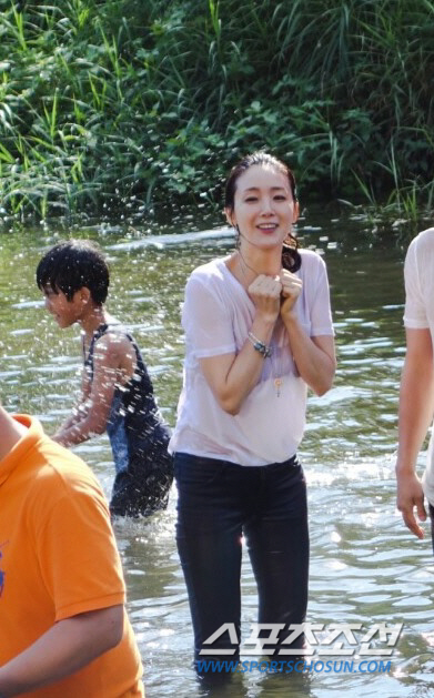 공개된 사진은 극 중 석훈, 마을 아이들과 함께 물장난을 치며 행복한 데이트를 즐기는 세영의 촬영현장 비하인드 사진이다.