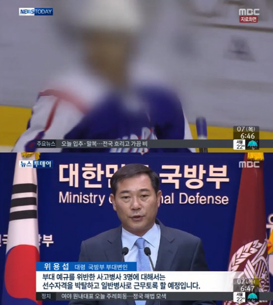 이와 관련해 국방부 부대변인은 "부대 예절을 위반한 사고병사 3명에 대해서는 선수자격을 박탈하고 일반병사로 근무토록 할 예정이다"라고 밝혔다.