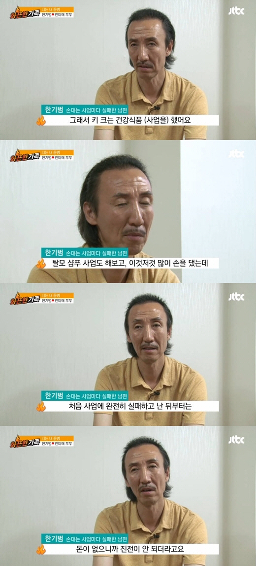 6일 오후 방송된 종합편성채널 JTBC '화끈한 가족'에서는 한기범과 아내 안미애의 이야기가 그려졌다.