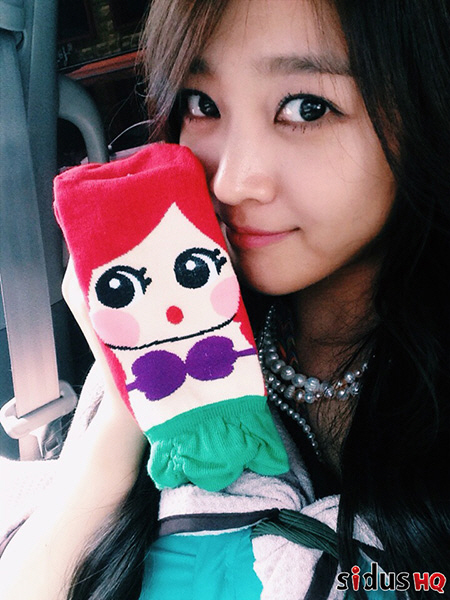 공개된 사진 속 조보아는 자신과 똑 닮은 귀여운 인어공주 양말을 들고 환한 미소를 지은 채 카메라를 응시하고 있는 모습이다.
