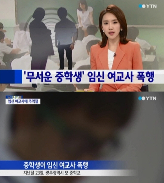 중학생이 수업 도중 임신한 여교사의 배를 주먹으로 가격한 사실이 알려져 네티즌들의 분노를 사고 있다.