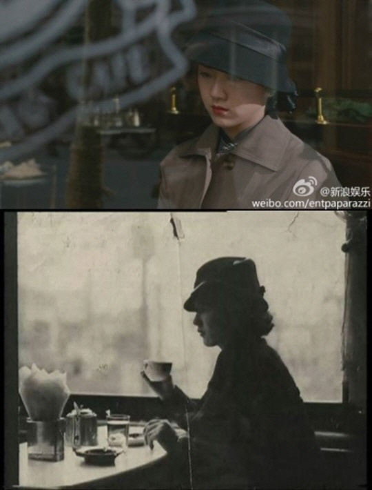 사진 속 실제 모델은 창가 옆 한 테이블에서 커피를 마시고 있다. 특히 모자를 쓴 외모와 분위기 등이 영화 속 탕웨이의 모습과 매우 흡사해 이목을 집중시킨다.