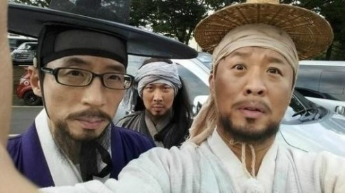 무한도전 정준하가 공개한 사진에는 무한도전 정준하가 한복을 입은 유재석, 하하와 함께 조선시대 사람들로 분장한 모습을 드러냈다.