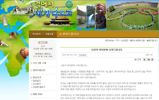 KBS가 '걸어서 세계속으로' 프로그램과 관련해 공식 사과했다.