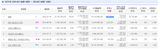 영진위 영화관입장권통합전산망에 따르면 '명량'은 지난 8일부터 10일까지 주말에만 280만9312명을 동원하며 '겨울왕국'의 1029만 5591명을 앞서 올해 최고 흥행 영화가 됐다.