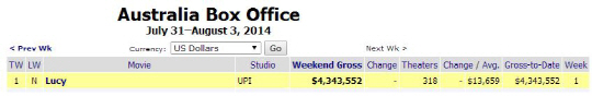 지난 달 25일 북미 개봉과 동시에 박스오피스 1위를 석권했던 '루시'는 뤽 베송 감독 작품 중 역대 최고 오프닝 스코어를 기록한 것을 비롯해 할리우드 배우 스칼렛 요한슨의 생애 첫 원톱 주연 영화 중 최고 성적을 기록했다.