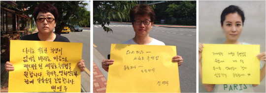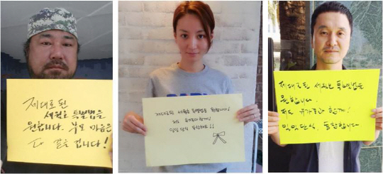 영화인들은 세월호 특별법 관련 지난 7일 여야합의안에 반대하며 진상조사위원회에 수사권과 기소권을 부여하는 제대로 된 세월호 특별법 제정을 촉구한다는 입장을 거듭 밝혔다. 이어 유가족과 국민의 요구가 관철될 때까지 함께 하겠다고 입을 모았다. 다음은 단식 동참 영화인들의 개별 메시지.