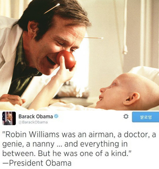 할리우드 유명 배우 로빈 윌리엄스의 사망 소식에 미국 대통령이 서한을 통해 애도의 마음을 전했다.
