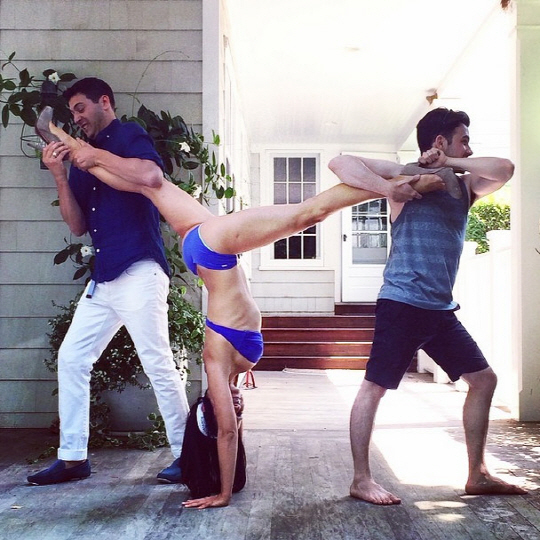 알렉 볼드윈(56)의 아내 힐러리아 토마스(30)가 비키니를 입고 민망한 물구나무 자세를 선보였다.