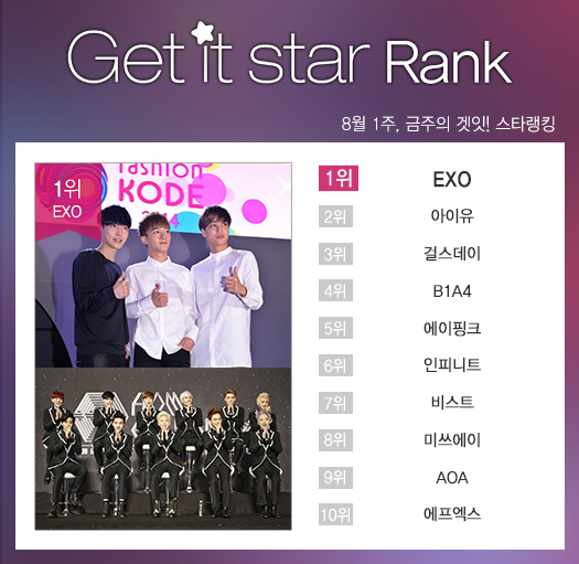 그럼 겟잇스타 앱 다운로드 후 내가 좋아하는 스타의 순위를 높여주세요!