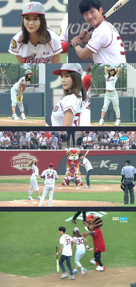 가수 홍진영과 배우 남궁민의 시구가 화제를 모은다.