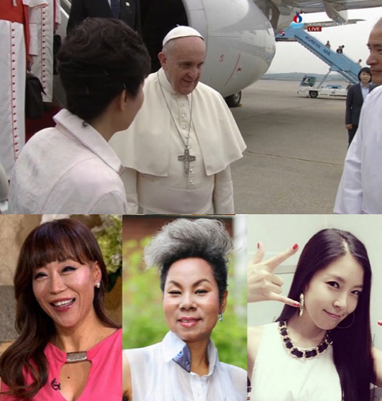 14일 프란치스코 교황은오전 10시30분 경기도 성남 서울공항을 통해 4박 5일간의 일정으로 한국을 방문했다. 교황은 서울공항에 도착해 박근혜 대통령과 한국천주교 관계자들의 영접을 받았다.