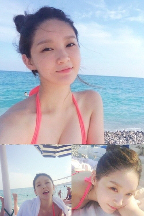 사진에는 푸른 바다를 배경으로 포즈를 취하고 있는 강민경의 모습이 담겨있다. 핑크색 비키니를 입고 해변가에 누워 휴식을 취하고 있는 강민경은 은근한 볼륨과 우윳빛 피부를 과시해 시선을 모은다. 청순하면서도 섹시한 매력이 남성 팬들의 마음을 흔들고 있다.