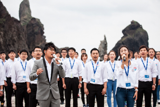 이승철은 "독도에서 통일송을 부르기까지 많은 어려움도 있었지만, 오길 참 잘했다"면서 "서로 다르게 자라온 우리들이지만 한 목소리를 낼 수 있는 이 독도에서 통일을 염원하는 노래를 발표하게 돼 기쁘고도 영광스럽다"고 말했다.