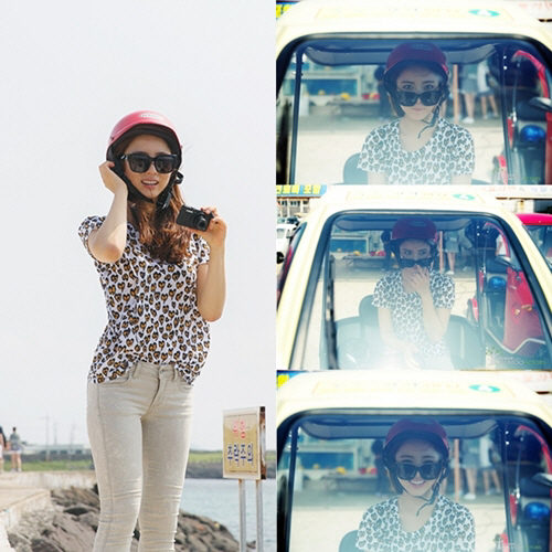 화보 촬영 차 제주도를 방문한 신세경은 막간을 이용해 스태프들과 나들이를 떠났다. 우도에서 미니 바이크를 타기 위해 헬멧을 착용 후 카메라와 눈이 마주치자 잠시 고민하던 신세경은 활짝 웃으며 화답했다.