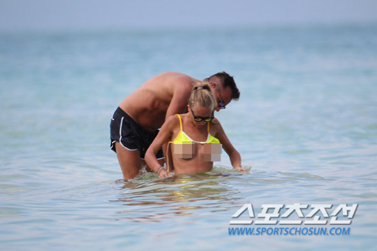 이탈리아 출신의 쇼걸 로라 크레마시가 비키니 상의를 올리며 가슴을 노출했다.