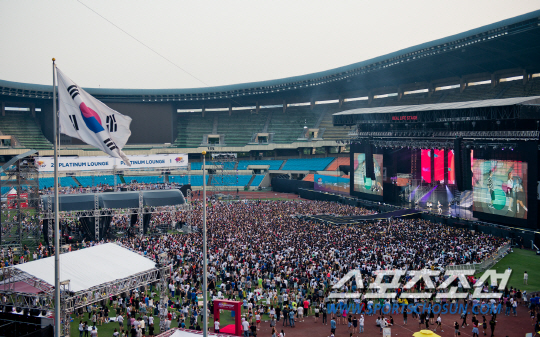 new HawkEyes({'type':'banner','responsive':'N','platform':'M','scriptCode':'954384','frameCode':'43','width':'320','height':'100','settings':{'cntsr':'4','mChk':'100'}}); 15일 오후 잠실종합운동장 주경기장에는 'AIA 리얼라이프 나우 페스티벌'의 헤드라이너로 나선 'YG패밀리'의 콘서트를 보기위해 35,000여의 관객이 운집했다. 한국 관객들뿐만 아니라 이들을 보기위해 외국에서 온 관객들이 많은 것도 눈에 띄었다. 이 날 공연에는 싸이, 빅뱅, 투애니원, 에픽하이, 이하이, 악동뮤지션, 위너, B팀 등 YG패밀리가 총출동하여 화려한 무대를 선사하였다.