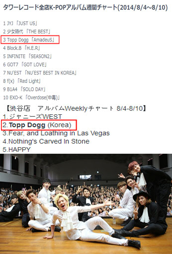 이 차트가 더욱 큰 의미가 있는 이유는 사실상 탑독은 한국에서의 데뷔 10개월차의 신인이며 일본 활동은 지난 9일에 열린 쇼케이스가 전부인 상태임에도 불구하고 좋은 성적을 거두고 있다는 점이다. 또한 일본 전국 타워레코드 위클리 종합 앨범 차트라는 점과 차트에 올라있는 가수들이 K-POP의 선두주자이자 최고의 자리를 지키고 있는 JYJ, 소녀시대라는 것이다. 덧붙여 도쿄 시부야점에서는 현지 일본 유명 그룹인 쟈니즈웨스트와 함께 1,2위에 나란히 랭킹되어 탑독의 치솟는 인기를 실감케 하였다.