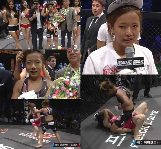 이날 송가연의 상대 선수는 일본 야마모토 에미 선수(33)로 스타와의 대결과 반일 감정 등 불리한 상황 속에서 송가연에 맞섰다.