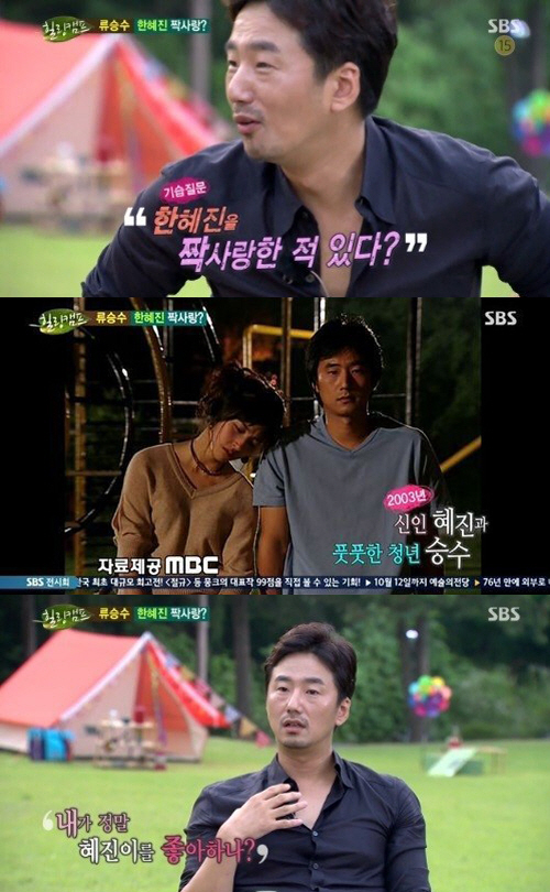 이날 MC 김제동은 "우리가 정보를 입수한 게 있다. 한혜진을 짝사랑한 적이 있지 않으냐"고 물었다. 이에 류승수는 "그 정보를 어디서 입수하셨는지 모르겠지만..."이라며 당황한 모습을 보였다.