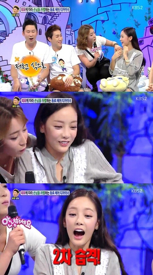 구하라가 민망한 듯 몸을 숙이자 헤어디자이너는 "안 부끄러워해도 돼"라며 가슴을 습격해 스튜디오를 초토화했다.