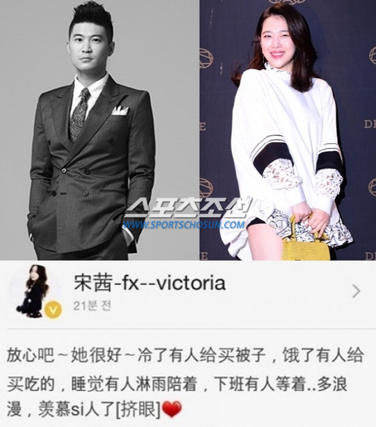 다이나믹 듀오 최자와 에프엑스 설리가 열애 사실을 인정한 가운데, 에프엑스 멤버 빅토리아가 두 사람의 열애를 축복했다.