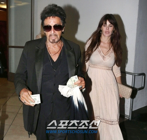 18일(현지시간) 미국 연예매체 스플래쉬닷컴은미국 베벌리 힐즈의 한 식당에 나타난 알 파치노와 루실라 솔라의 사진을 공개했다.