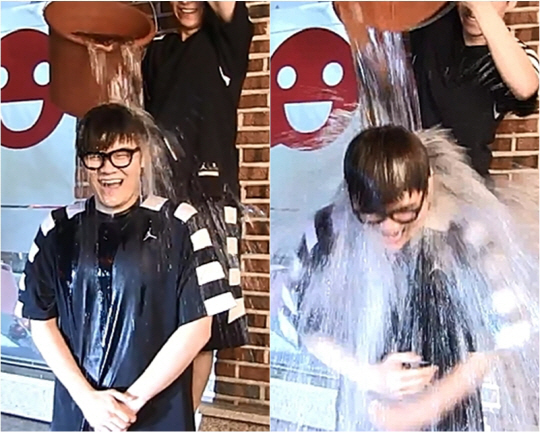 이어 포맨 김원주는 양동이에 얼음물을 가득 담아 캠페인 참가자인 신용재에게 내려 부었고, 신용재는 쏟아지는 얼음물을 맞으며 보컬리스트답게 시원한 샤우팅과 총총 뛰는 귀여운 모습으로 웃음을 자아냈다.
