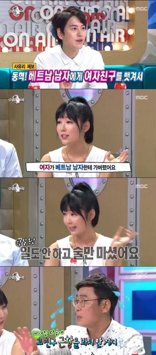 사유리는 8월 20일 오후 방송된 MBC 예능프로그램 '황금어장-라디오스타'에서 "장동혁이 과거 베트남 남자에게 여자친구를 빼앗겨서 펑펑 울었다"고 밝혔다.